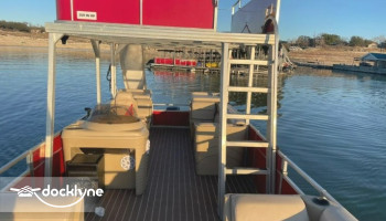 Our Deluxe Pontoon has a 1770 lb weight capacity for up to 12 people and their gear! The 115 HP 4 stroke Mercury O/B and is great for skiing, towing or luxury all-day cruising!